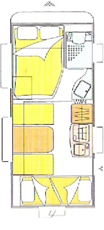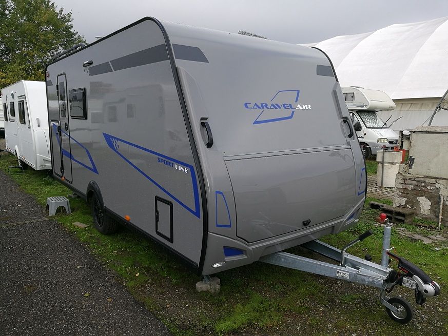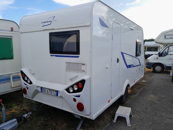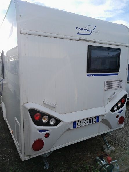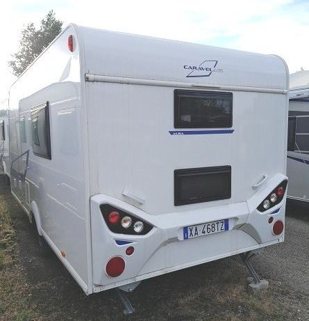 Caravelair Sport Line 476, tutte le pareti e tetto in vetroresina, posti letto 6, camera matrimoniale anteriore con letto fisso, dinette centrale con tavolo, letti a castello posteriori,wc thetford estraibile, serbatoio acqua lt.50, boiler trumatherme, doccianello e tenda doccia, stufa trumatic, frigorifero a compressore 12v. 150 LT. , zanzariere finestre, zanzariera porta ingresso, sportello gavone laterale, oblo' panoramico, cerchi in lega, stabilizzatore,